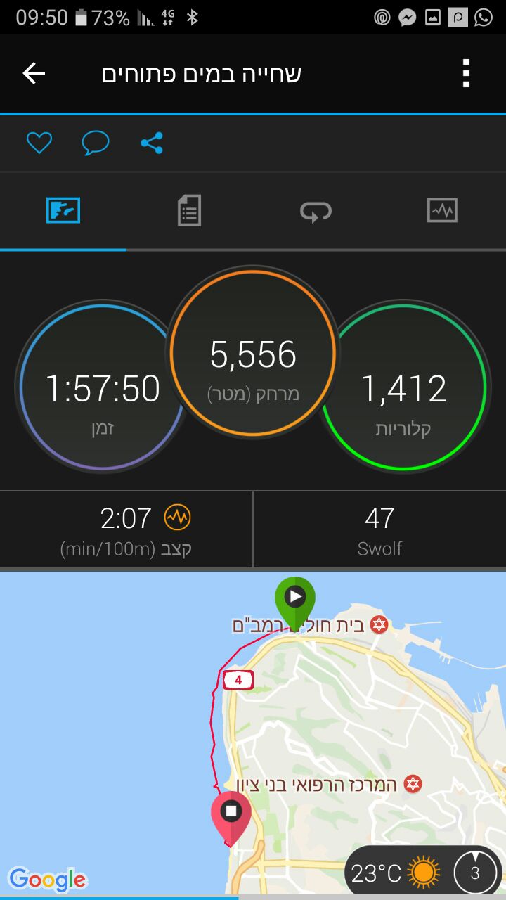 זמן קצת פתטי לעומת הקצב בבריכה, אבל אולי עם הזמן ועם כושר ניווט שיתפתח, אם ירצה השם, יום אחד, אהיה מעט פחות איטי.