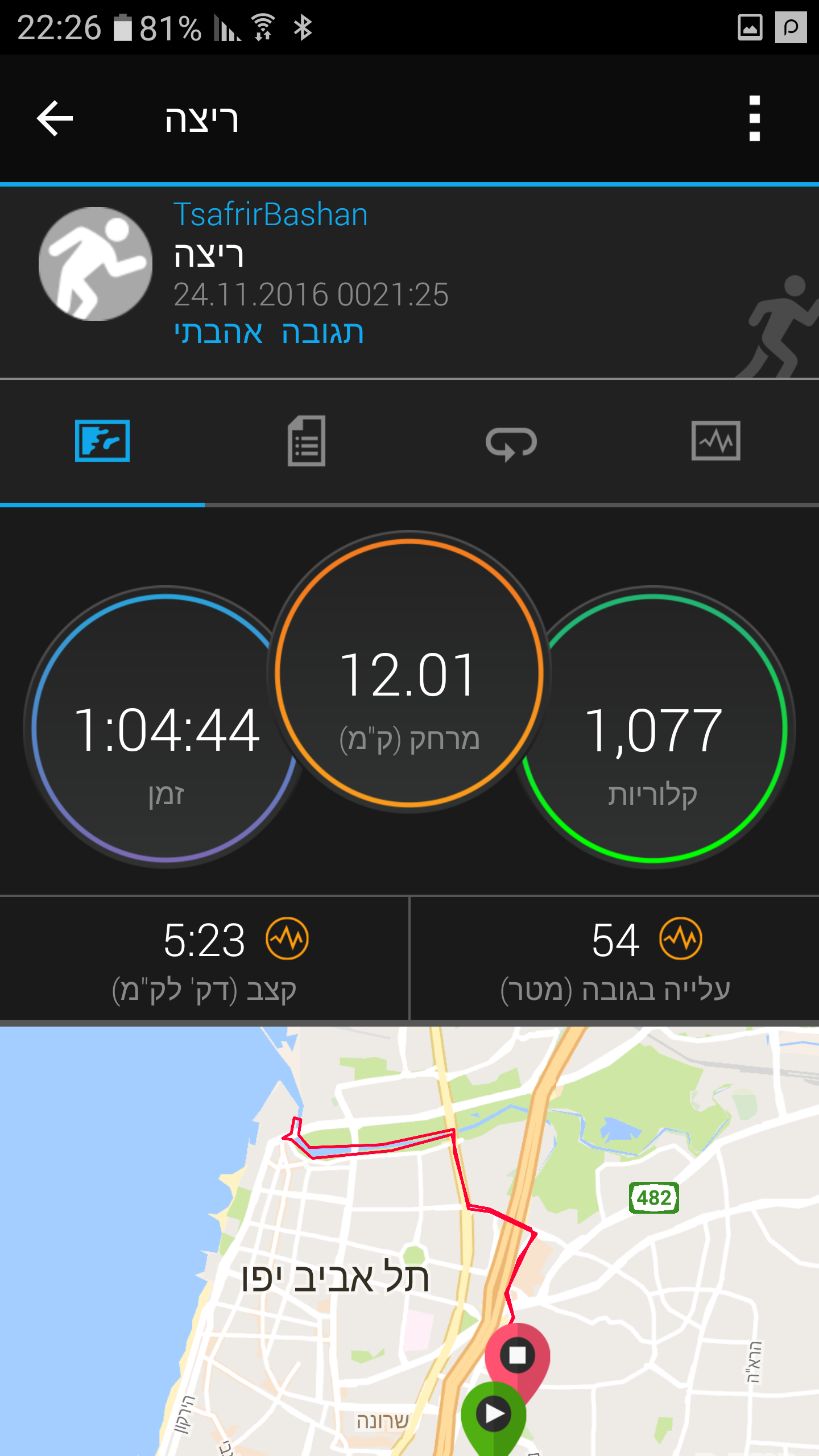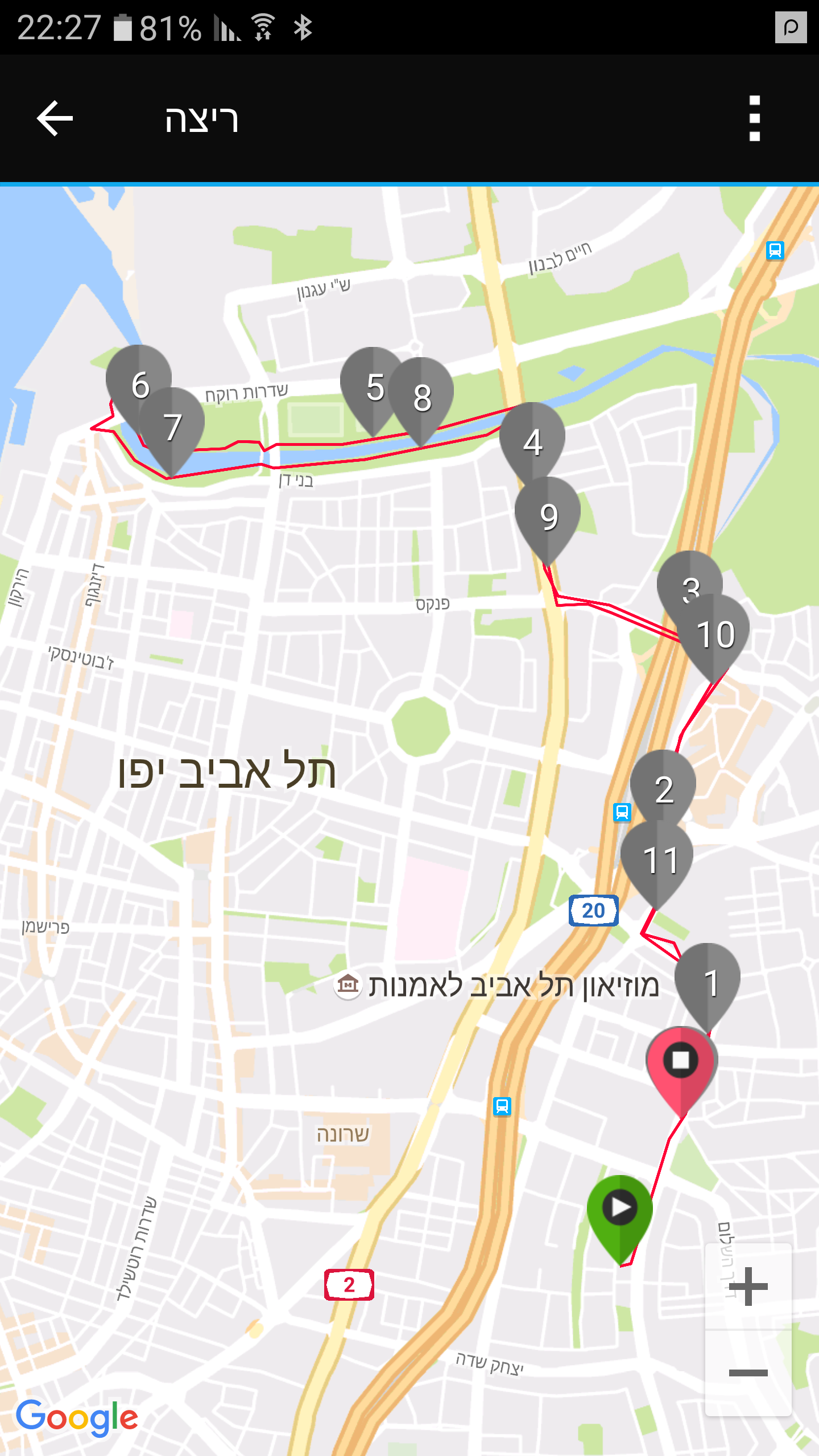 ולא רק זה: החלטתי גם שהיום אשלב את חיבתי האחת לצאת לריצה מדלת הבית עם חיבתי השנייה לרוץ בפארק הירקון, וככה, יצאתי, רצתי בעליית הנוער, ירדתי לבורסה, שברתי בביאליק, עליתי על דרך נמיר – והופה! פארק הירקון! הוקוס פוקוס. ואפילו נשאר לי עוד קצת מרחק, אז רצתי עד הפארק לפני שחזרתי דרך הגדה הצפונית.
