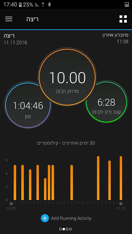 העלייה היתה שמחה גדולה. עליות עושות לי רק טוב. הן מחזקות את האמ-אמא של הרגליים שלי, מקלות עלי את הריצות האחרות עד בלי די (אני עדיין קצת בהלם מהמהירות של הריצות השבוע – פחות מחמש וחצי דקות לק"מ ממוצע במישוריות) וממלאות בסיפוק אחר לגמרי. באמת, זו חתיכת אתגר שנעים לעמוד בו.